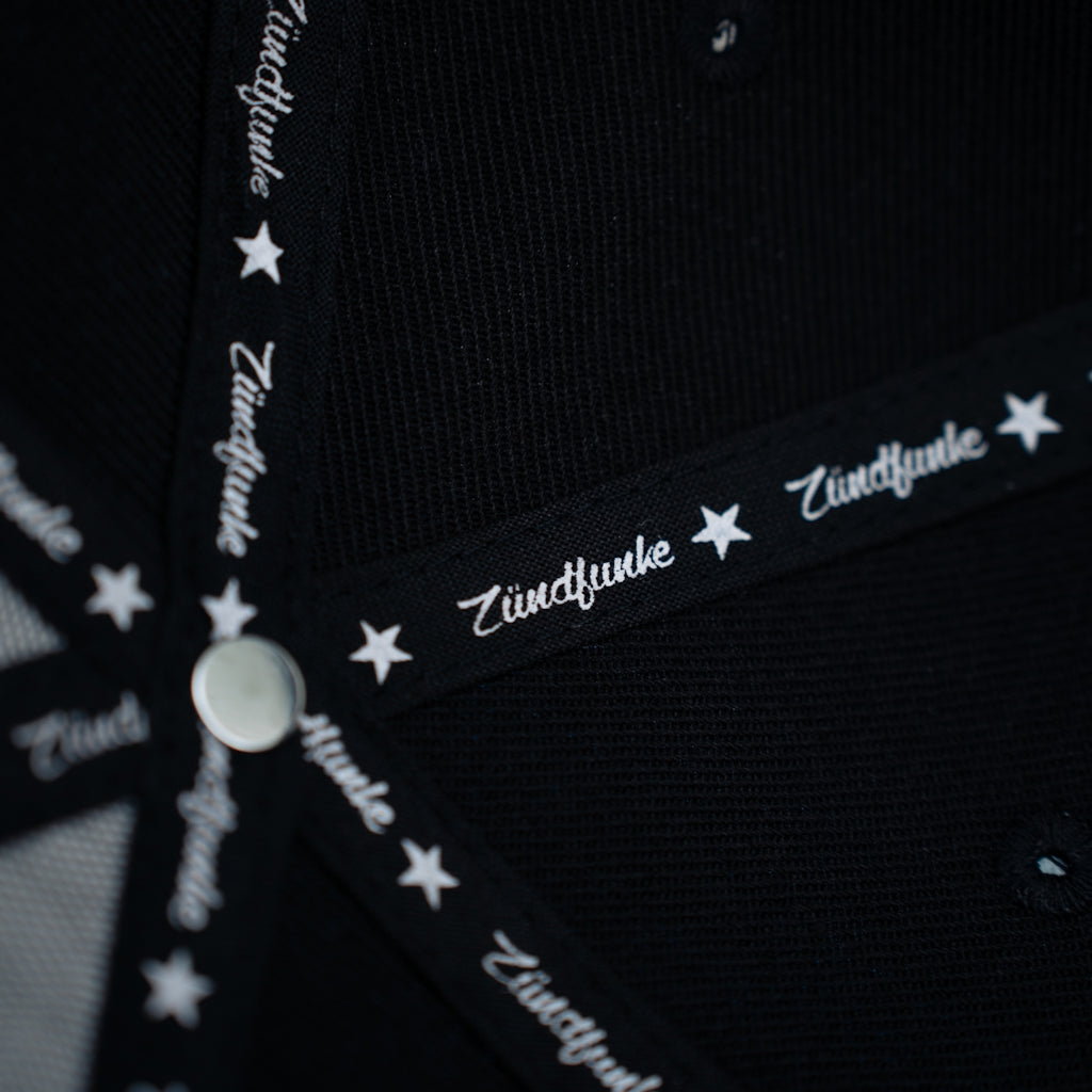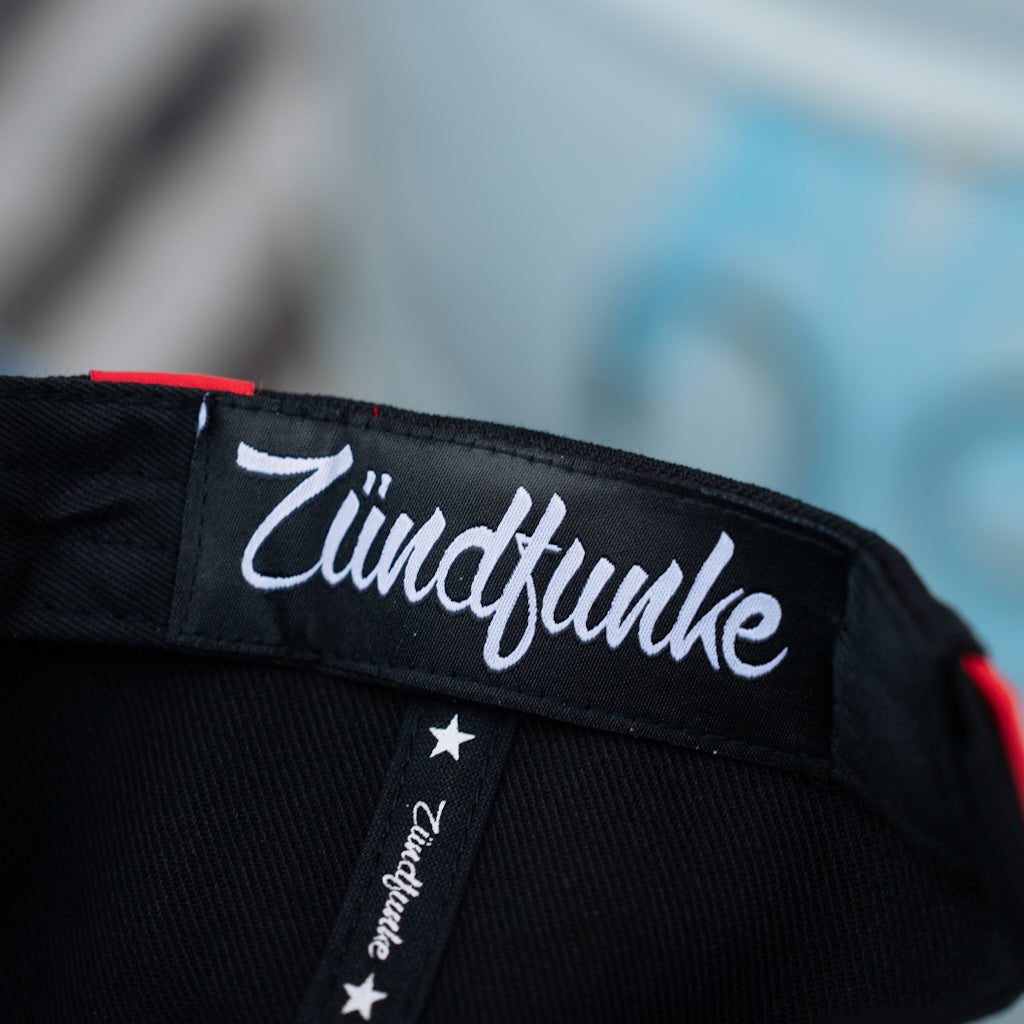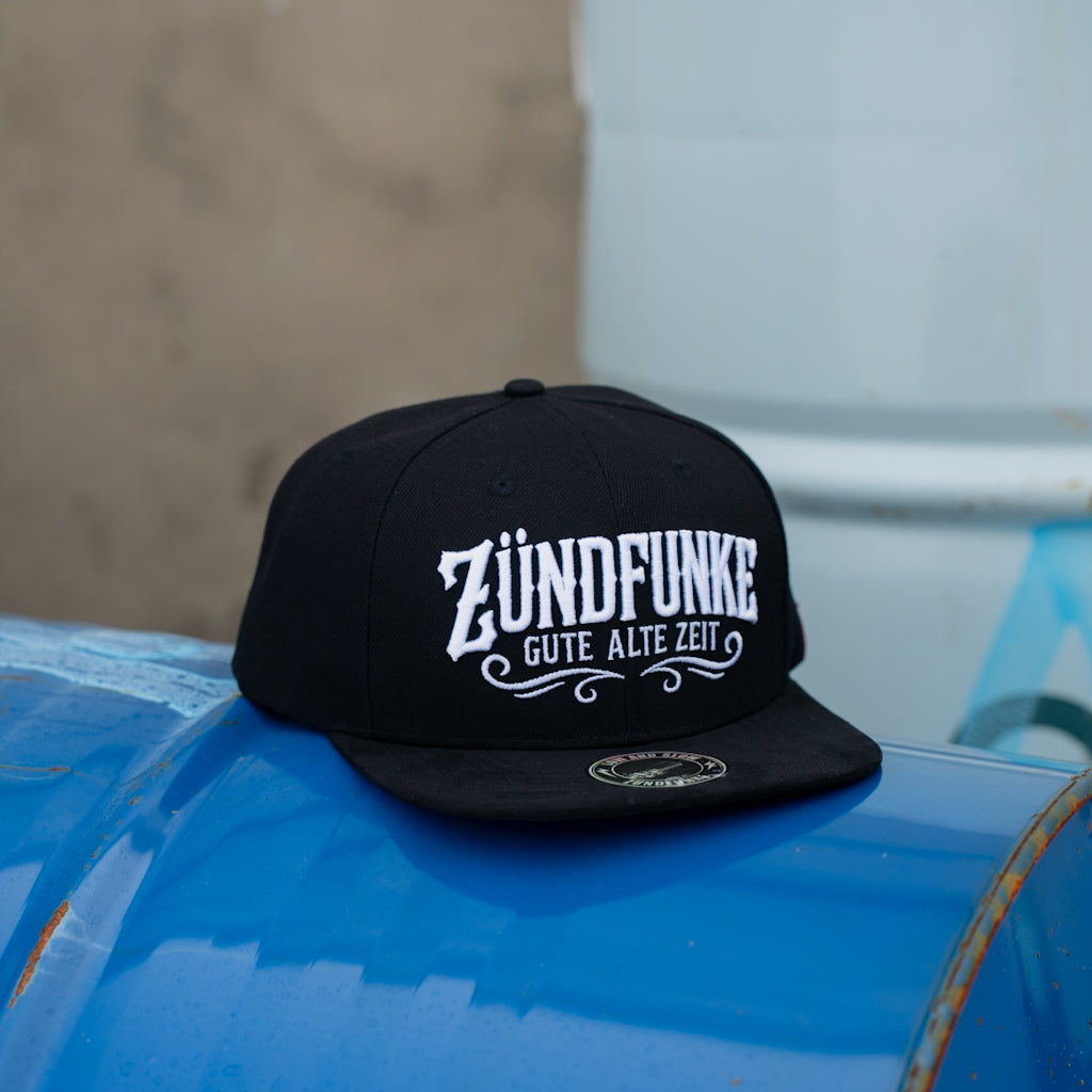 Das klassische 6-Panel SnapBack in der Farbe Schwarz , kommt mit Coolen Zündfunke Gute Alte Zeit Stick.